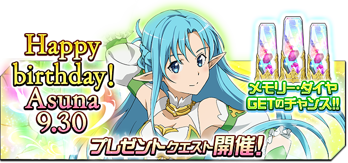 ソードアート オンライン メモリー デフラグ 9月30日はアスナの誕生日 誕生日記念にメモリー ダイヤを25個プレゼント Boom App Games