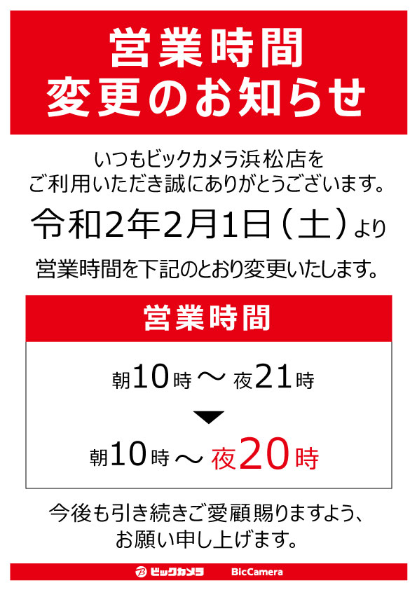 ビックカメラ 各店舗営業時間変更のお知らせ Togetter