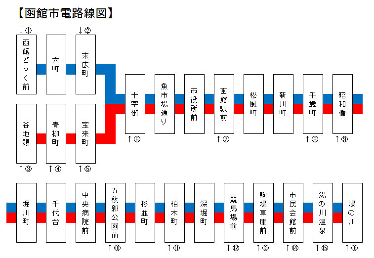 ぐらぴ アルゴナビス聖地案内 Pa Twitter アルゴナビスの函館聖地巡りは函館市電使うとわかりやすいよ 多分この路線図で説明要らないくらい 電停降りたら函館聖地マップ Https T Co Um1vyv5x4n をご参考にしてください アルゴナビス 函館 聖地巡礼 Https