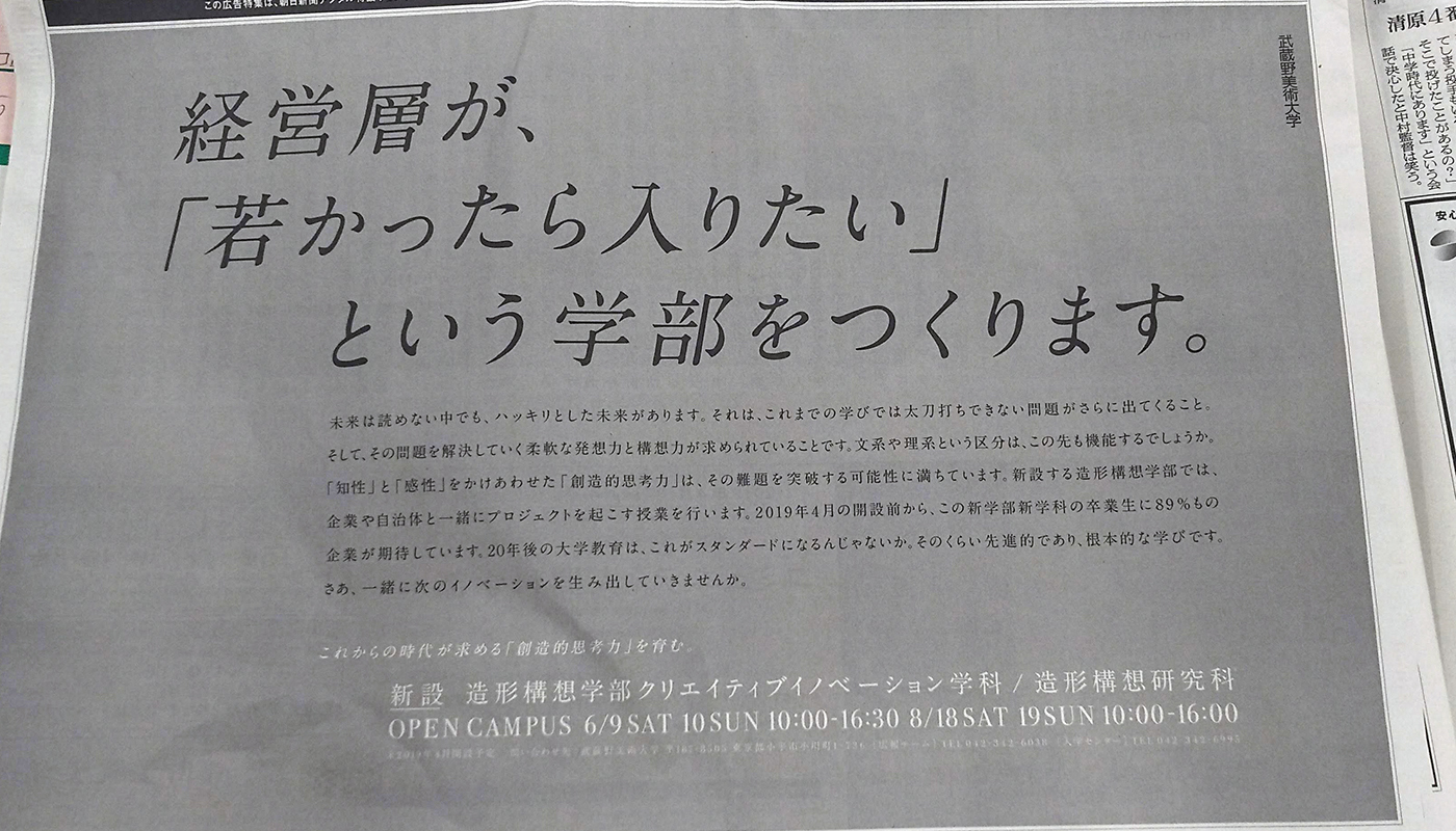 2019年4月 新学部開設 武蔵野美術大学 日本の学校