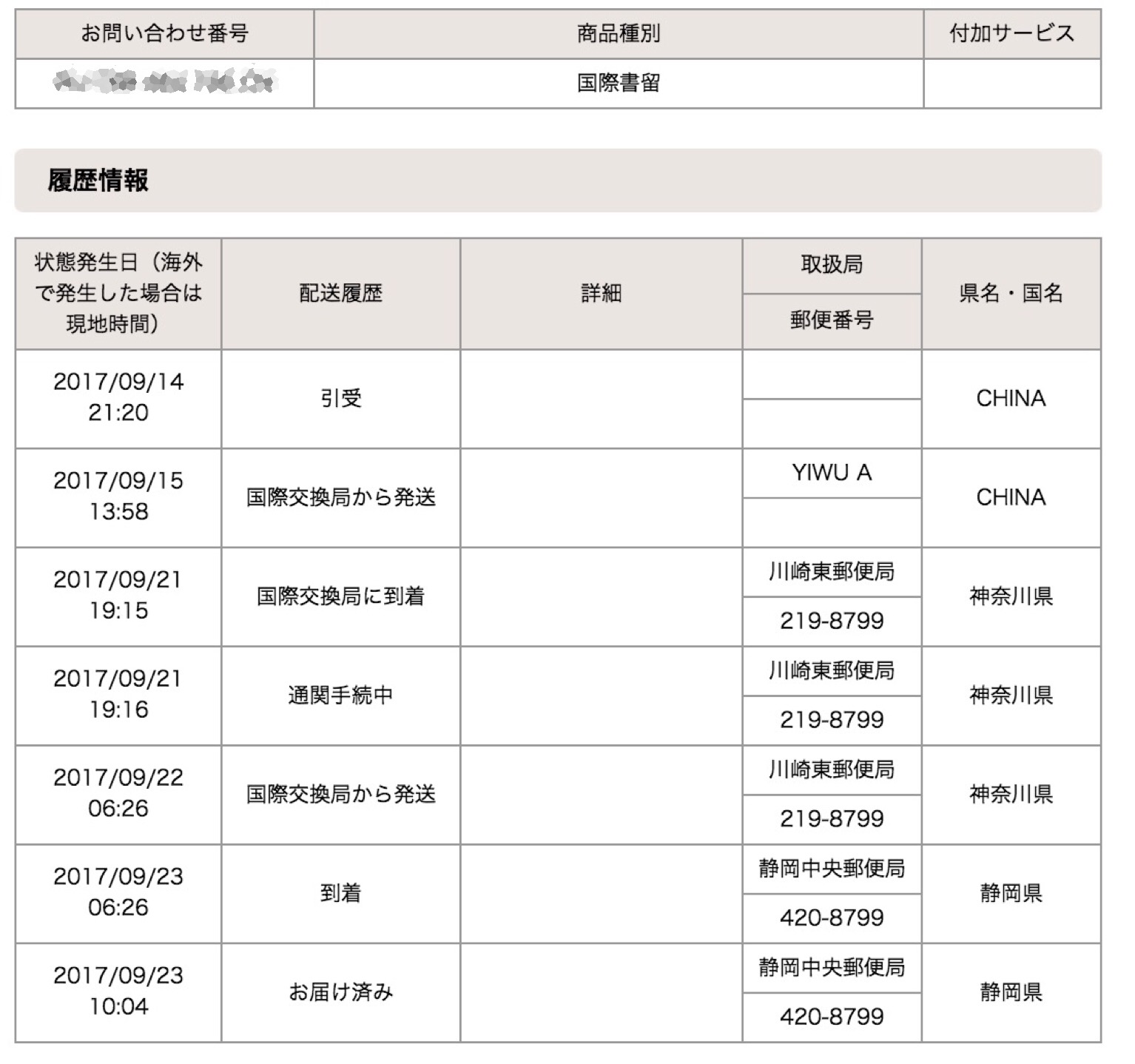 中国邮政平常小包 なのに日本へ到着したタイミングの分かる川崎 已到达寄达地が表示された件 ただしごく一部の追跡 番号です Aliexpressで買ったもの