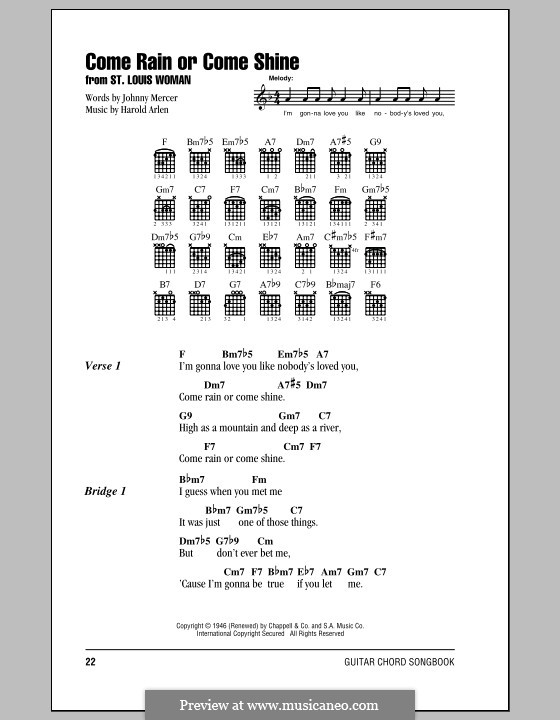 Harold Arlen Come Rain Or Come Shine Sheet Music Pdf Notes Chords Jazz Score Guitar Chords Lyrics Download Printable Sku 80189