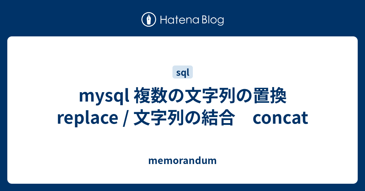 Mysql 複数の文字列の置換 Replace 文字列の結合 Concat Memorandum