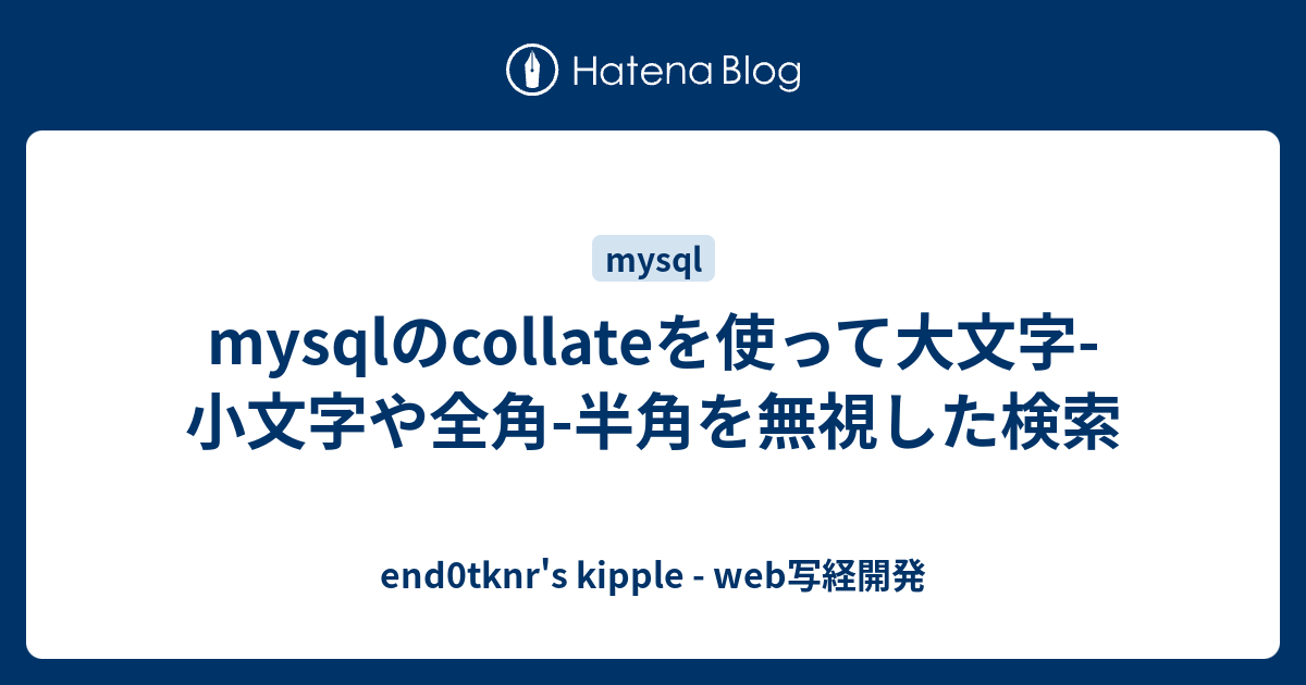 Mysqlのcollateを使って大文字 小文字や全角 半角を無視した検索 End0tknr S Kipple Web写経開発